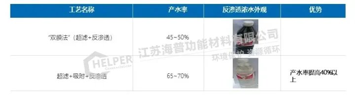 Introducing deep adsorption between dual membranes, due to the high adsorption capacity, stability, and easy regeneration ability of nano adsorbents, they can adsorb organic matter in biochemical wastewater, reducing COD to below 50mg/L and chromaticity to below 50, avoiding fouling of reverse osmosis membranes, reducing cleaning times, improving service life, and reducing operating costs.